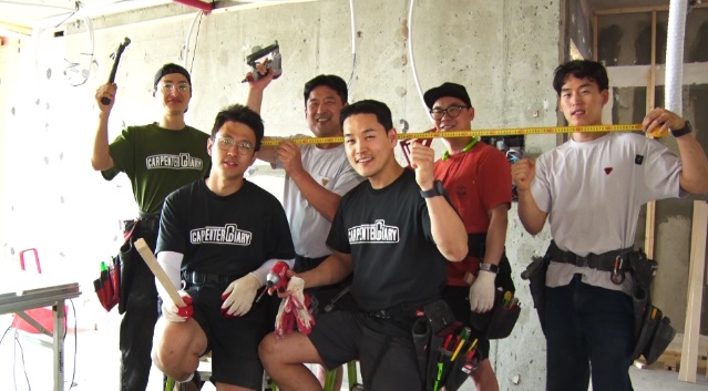 팀장인 이준호 씨는 막내들을 실력 좋은 목수로 키우기 위해 일도 가르치고 홀로 청주살이 중인 막내를 챙긴다고 바쁩니다. 윤해 씨까지 총 6명인 평균 30대 중반인 젊은 목수 팀은 국립대 기계공학과 출신의 조우진(39세) 실장, 팀의 분위기 메이커는 김진한(44세) 씨는 큰 형님, 11년차인 전직 군인 출신 임주영(32세) 씨와 떡볶이집을 했던 동기 이경수(30세) 씨로 이루어져 있습니다.