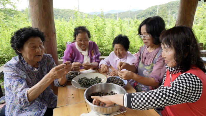 발효식초를 연구하며 자연이 내어주는 식재료로 음식을 하는 재미도 알게 됐다는 박옥순 씨는 집 근처 강에서 잡은 다슬기에 천연 발효 식초를 듬뿍 넣어 초무침을 했습니다. 천연 발효식초는 맛과 향이 깊어 양껏 넣어도 톡 쏘는 자극이 없고, 다슬기의 찬 성질을 보완해 주는 따뜻한 성질까지 있어 피로 해소에도 좋다고 합니다.