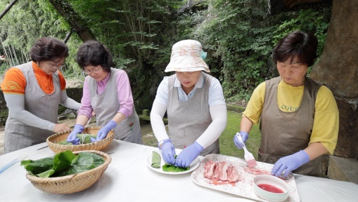 ‘족살’이라고 불리는 돼지 앞다리살을 볶아 신김치와 푹 끓여내면 농사의 고단함을 달래는 보양식이 됩니다. 콩밭 사이사이 무성하게 자라는 쇠비름으로 나물을 무치고 장떡까지 올리면 마을 사람들의 입맛을 돋우는 여름 밥상이 완성됩니다. 시원한 동굴 앞에 한 상 가득 차려내면 고된 몸과 마음을 충전하기에 이보다 좋을 수 없습니다. 자연의 선물인 동굴이 있어 여름을 더 잘 날 수 있다는 마을의 건강한 여름 나기를 만나보았습니다.