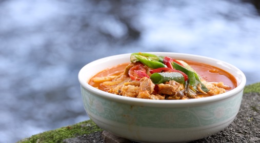 망중한의 계절, 특별식이 빠질 수 없습니다. 동굴 마을에선 문경의 자랑인 약돌 돼지에 오미자 진액을 발라 호박잎에 싸서 동굴 속 차가운 항아리에 하루 숙성시킵니다. 숙성한 고기는 육질이 부드럽고 쫄깃합니다. 동굴이 있어 대대로 전해져 온 이 마을 맛의 비법입니다. 이걸로 부족하다 싶으면 탄광이 성행하던 시절 광부들이 즐겨 먹던 족살찌개를 끓입니다.