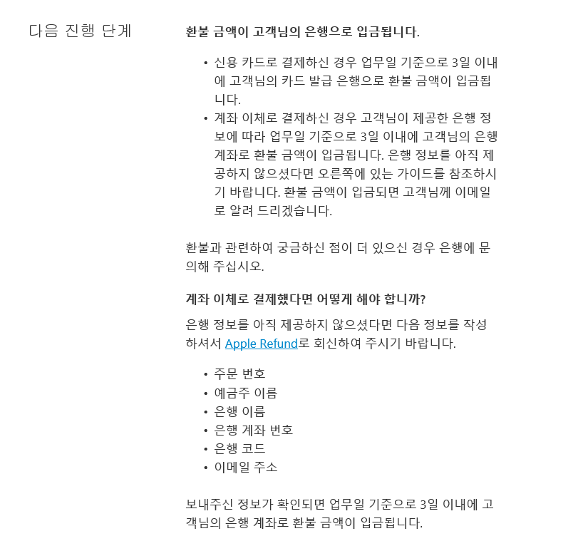읽어보면 환불금액이 입금되면 이메일 보내준다고 적혀 있는데, 따로 메일은 안왔습니다; 왔는데 사라진건지.