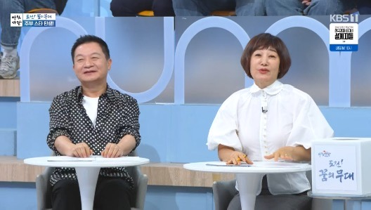 KBS1 아침마당 수요일 도전! 꿈의 무대 방영일 : 2025년 8월 6일 KBS1 아침마당 8월 6일 수요일 도전 꿈의 무대 주부스타탄생에는 김은아 박라연 이사벨라 정은주 한민정이 출연했습니다. 초대가수이