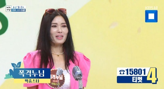 KBS1 아침마당 8월 20일 수요일 도전 꿈의 무대 주부스타탄생에는 모나미(최세연), 신선아, 아라, 이해진, 폭격누님이 출연했습니다. 초대가수이자 패널로는 남궁옥분이 출연했습니다.