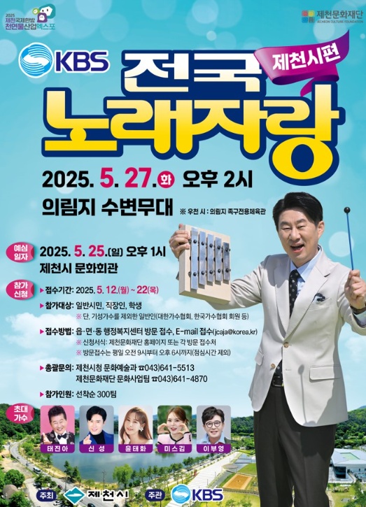 MC남희석이 진행하는 충청북도 제천시편은 2025년 5월 25일에 예심이 있었습니다. 본선 녹화날짜는 2025년 5월 27일이었으며 녹화장소는 의림지 수변무대입니다.