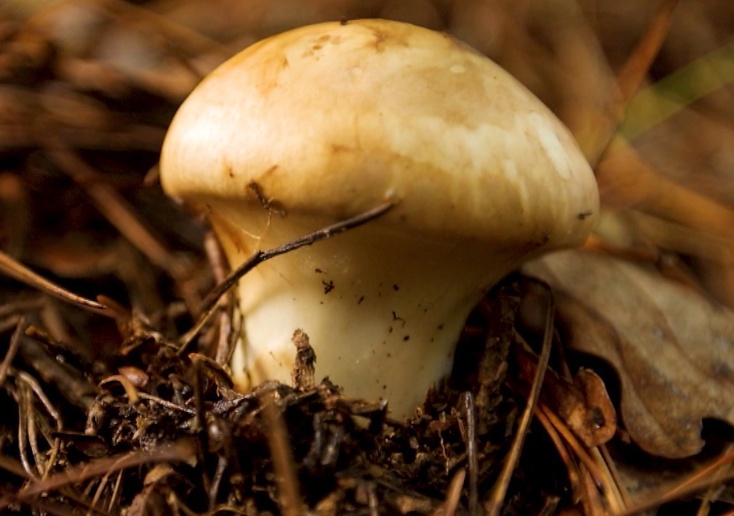 드디어 땅속에 숨은 송이가 슬쩍 모습을 드러냅니다. 허리 휘도록 힘든 산행 끝에 얻어낸 귀한 송이 한 송이는 밥 위에도 척 올리고