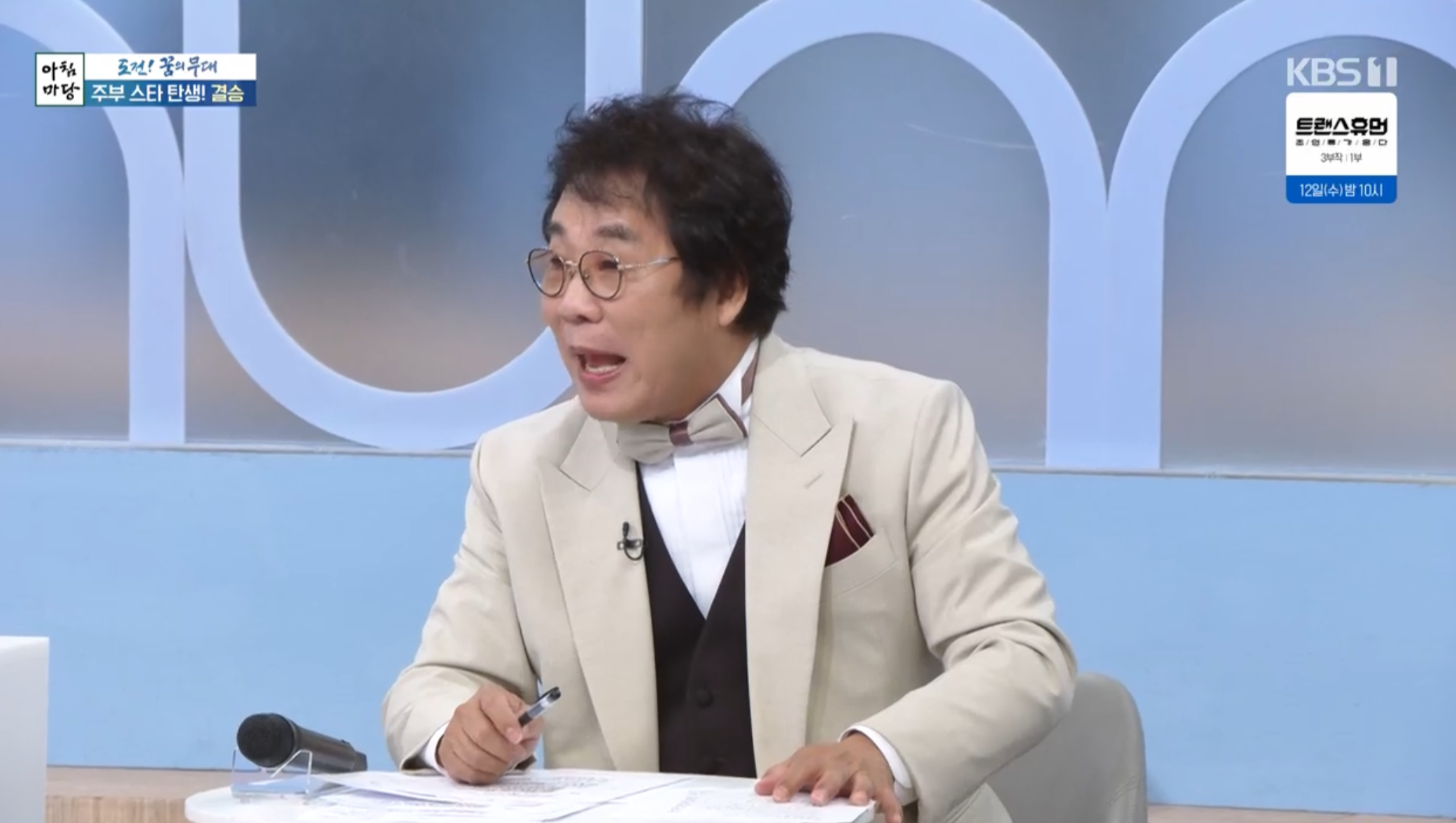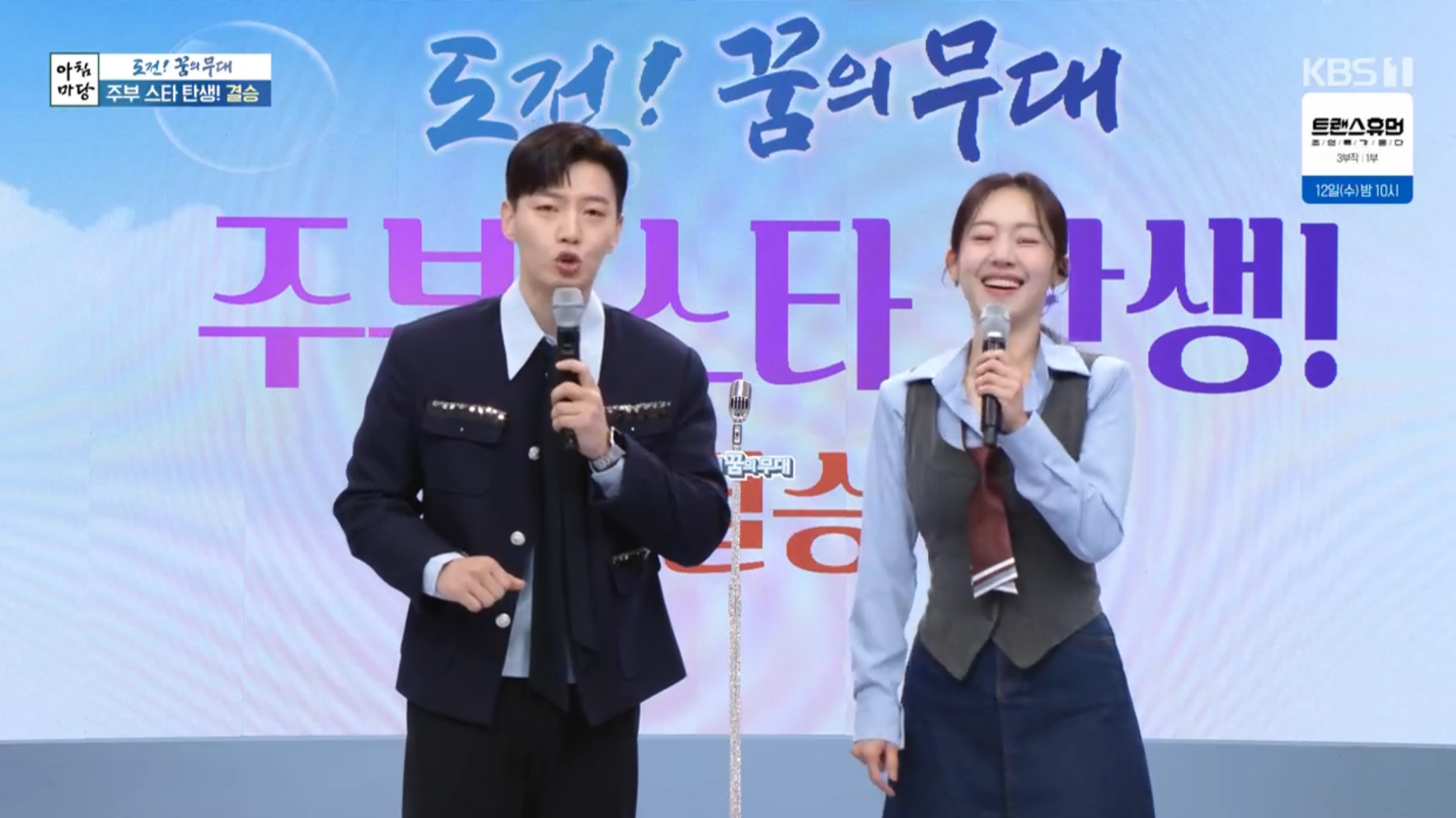 KBS1 아침마당 수요일 도전! 꿈의 무대 방영일 : 2025년 10월 22일 KBS1 아침마당 10월 22일 수요일 도전 꿈의 무대 주부스타탄생 올스타전에는 주부스타탄생 TOP6와 도전꿈의무대 5승가수가 출연했습니