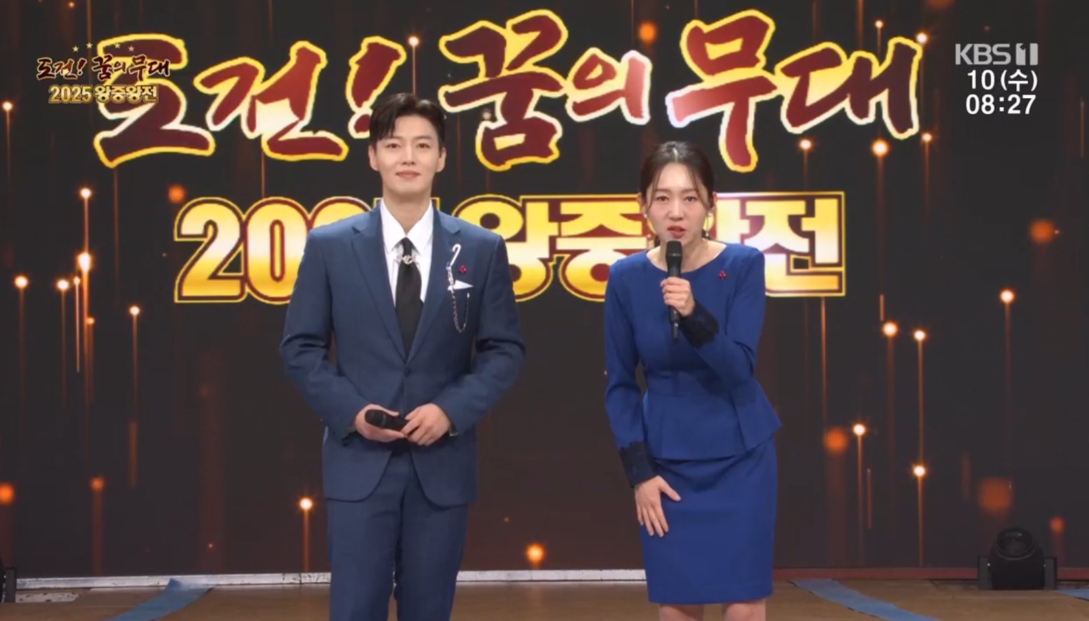 아침마당 12월 10일 수요일 도전 꿈의 무대 2025 왕중왕전 최종 우승자는 가수 하루로 우승 선물인 홍진영 작곡가의 신곡을 받게 되었습니다.