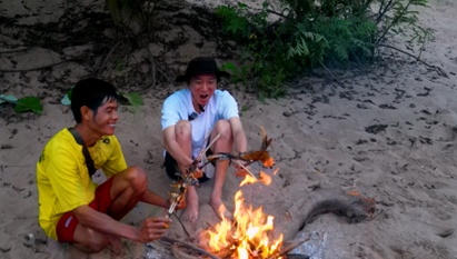 산 아래 우강(Ou River)에서는 장대를 이용한 독특한 고기잡이가 펼쳐집니다. 강에 그물을 내린 뒤 장대로 수면을 세차게 쳐서 물고기들을 놀라게 해 그물 쪽으로 몰아넣는 방식입니다. 큰 욕심 없이 하루 먹을 만큼이면 충분하다는 어부의 지혜를 배웁니다. 고기잡이 후 함께 생선 직화구이를 즐기며 자연 속에서 여유와 낭만을 만끽했습니다. 느리지만 단단하게, 자연과 더불어 살아가는 라오스에서 많은 것을 배우고 느낀 여행이었습니다.