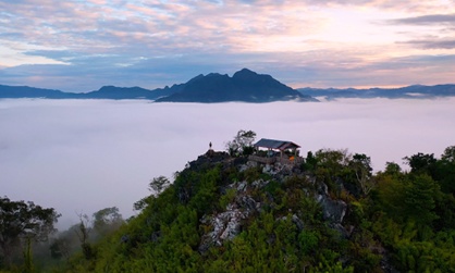 다음으로 찾아간 곳은, 카르스트 지형의 석회암 산이 빚은 절경으로 유명한 농키아우(Nong Khiaw)입니다. 농키아우 마을을 한눈에 바라볼 수 있는 파댕(Pha Daeng) 전망대로 향합니다. 힘겨운 1시간 30분의 산행 중 들쥐를 잡는 아이들을 만나 라오스 북부 소수민족의 일상을 들여다봅니다. 산간 지대 소수민족들이 즐겨 먹는다는 들쥐 고기는 닭고기 맛과 비슷해 담백하고 고소하다고 합니다. 마침내 도착한 파댕 전망대에서 운해가 깔린 농키아우의 전망을 감상하며 내면의 평안을 마주합니다.
