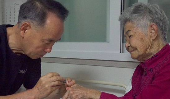 남편 정연견(57세) 씨는 35년 동안 은행을 다니다가 작년에 퇴직했습니다. 퇴직하면 아내 한맹년 씨의 손에 물 한방울 묻히지 않겠따고 하던 약속을 지켰습니다. 매일 어머니의 기저귀를 손수 봐드리고 밤이면 배회하는 장모님의 불안을 곁에서 지켜드리고 있습니다. 막내인 정언교(21세) 씨는 집안의 비타민으로 할머니들을 챙기는데 탁월합니다. 정언교 씨는 태어나지 알마 안되었을 때 부부에게 입양되었습니다.