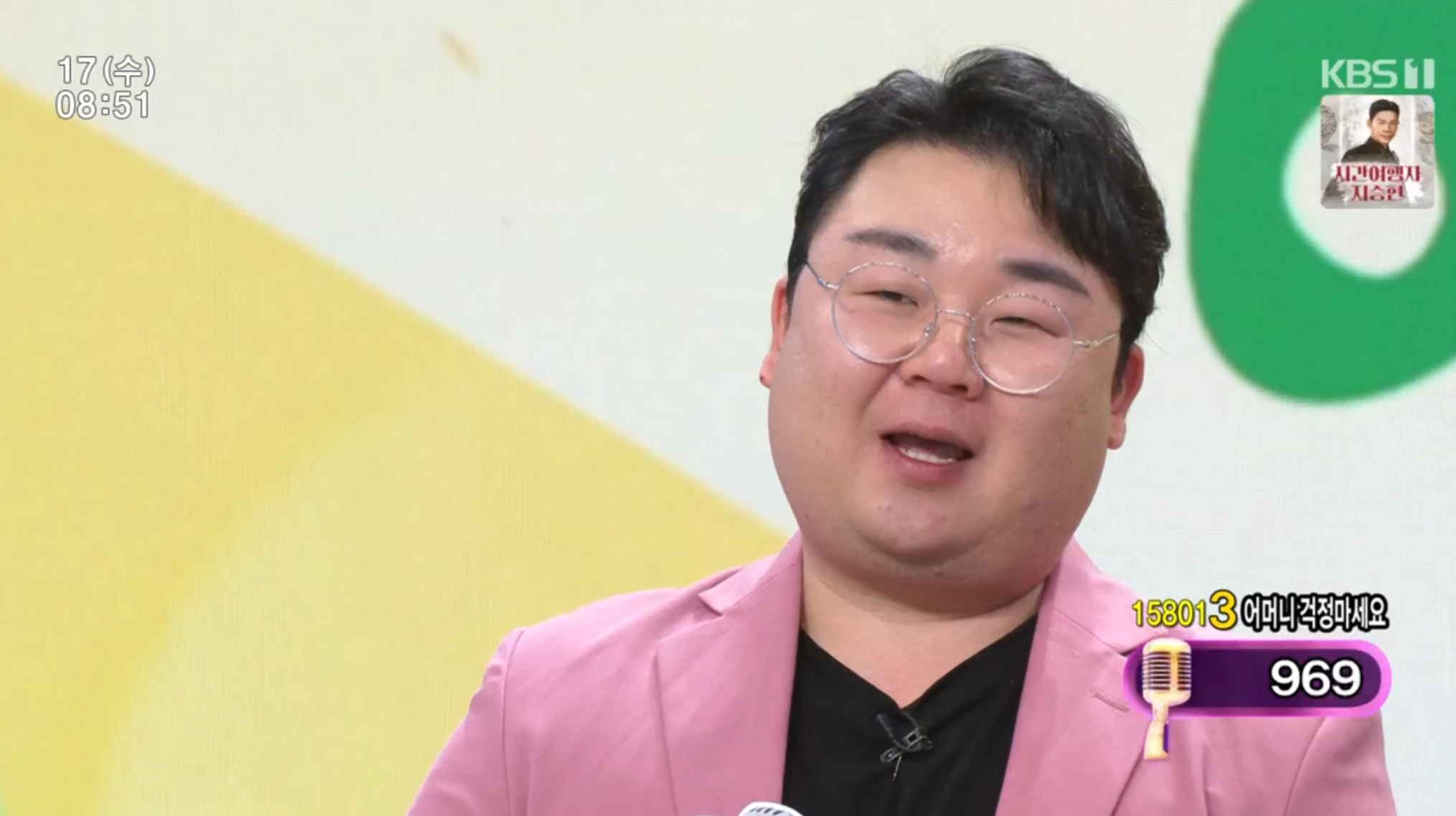 KBS1 아침마당 12월 17일 수요일 도전 꿈의 무대에는 김현민, 미스김, 민지홍, 신명난, 윤준협이 출연했습니다. 초대가수이자 패널로는 출연했습니다.