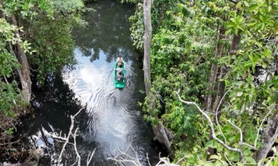 다음으로 향한 곳은 수랏타니(Surat Thani)에 위치한 반남랏(Ban Nam Rad) 수중림입니다. 현지인들 사이에서 '숲속의 오아시스'로 불리는 숨겨진 명소입니다. 맑고 투명한 에메랄드빛 천연 수영장에서 시원한 한때를 보냅니다.