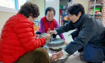 가리왕산에서 시작된 샘물이 가장 먼저 닿는 마을인 정선읍 회동리는 예부터 좋은 물로 유명해서 ‘청량골’이라 불렸다고 전해지고 있습니다. 산에서 내려온 물이 마을을 휘감아 흐르면서 이곳의 하루를 만들어왔습니다. 김옥자(80) 어르신은 가리왕산 물을 두고 “어느 곳과 비교해도 최고의 물”이라 단언합니다. 이순녀(83) 어르신은 물에서 산삼이 썩어 스며든 물이라는 뜻으로 ‘심 썩은 물’이라 표현하며 달고 쌉쌀한 맛이 난다고 했습니다. 이처럼 흉내 낼 수 없는 가리왕산의 물맛은 처음 마신 사람들의 발걸음을 붙잡아 정선에 머물게 했습니다. 이 물 때문에 도시를 떠나 청량골에 귀촌한 마을 주민들도 있다고 합니다.