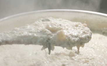 살림살이가 고단했던 시절에 마을 사람들은 부서지고 조각난 콩을 갈아 감자와 메밀쌀, 냉이를 넣은 콩갱이(콩죽)로 배를 채웠습니다. 콩갱이에 들어가는 재료들은 소박하지만, 가리왕산 물이 들어가는 순간 고소함과 식감이 한층 살아나면서 어디에서도 맛보기 힘든 최고의 음식이 된다고 합니다. 콩갱이를 끓이는 날이면 그 냄비는 한 집만의 것이 아니었습니다. 가리왕산 물로 끓인 소박한 콩갱이 한 그릇이 이웃을 불러 모으고 마음을 나누는 이유가 됐습니다. 가리왕산의 물은 그렇게 사람을 살리고 사람을 머물게 하며 청량골 사람들의 인심과 정을 만들어왔습니다.