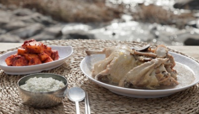 주왕산 끝자락에서 솟는 달기약수는 한 모금만으로도 기억을 붙잡는 맛입니다. 톡 쏘는 탄산과 쉽게 가시지 않는 쇠 맛은, 주왕산이 만들어낸 땅속 깊은 성질을 숨김없이 드러냅니다. 이 물맛을 보기 위해 멀리서 약수터를 찾아온 사람들은 추운 날씨에도 오랫동안 줄을 섭니다. 한 번 맛본 사람들은 다시 이 물을 찾기 때문입니다. 달기약수가 흐르는 달기골은 약수가 솟아날 때 ‘골골골’ 닭 울음 같은 소리를 내서 달기골이라고 불렸다는 이야기가 전해질 정도로 닭과 관계가 깊습니다. 달기약수터 주변에는 백숙집 골목이 들어서 있는데, 마을 어르신이 어릴 때부터 보고 자랐을 정도로 매우 오래됐습니다.