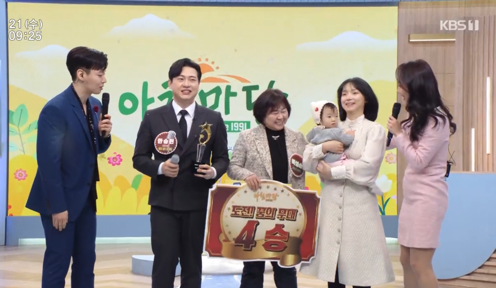 아침마당 1월 21일 수요일 도전 꿈의 무대 우승자는 한승헌이 4승에 성공했습니다.