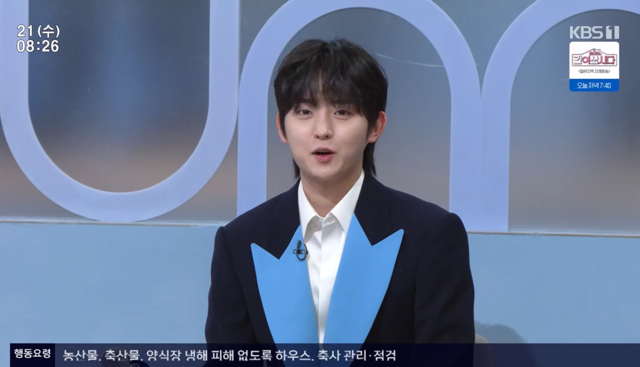 KBS1 아침마당 수요일 도전! 꿈의 무대 방영일 2026년 1월 14일 KBS1 아침마당 1월 14일 수요일 도전 꿈의 무대에는 한승헌, 미선, 손주본, 온유, 윤성준이 출연했습니다. 초대가수이자 패널로는 하춘