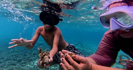 대나무 마룻바닥 사이사이로 바다가 훤히 보입니다. 바다에 뿌리내린 바자우족은 일반 사람들보다 유전적으로 잠수 능력이 뛰어나다는데 함께 고둥잡이에 나서 그 진위를 가려봅니다다.