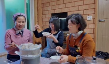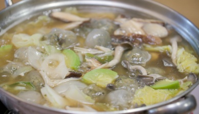 인삼에 두릅, 고기 맛까지 난다고 해서 ‘삼나물’이라 불리는 눈개승마와 어수리, 곤드레나물에 갖은 재료를 버무려 빚는 산채만두는 고기를 넣지 않아도 고기 맛이 나는 아주 특별한 만두가 됩니다. 고추씨를 덖어 맑게 우려낸 칼칼한 육수에 쫄깃한 산채만두를 넣어 만드는 전골은 남편과 아들이 가장 좋아하는 겨울철 얼큰 보양식입니다. 그리고 탄광 마을 태백의 대표 음식인 물닭갈비도 바람 불고 추운 날이면 꼭 끓여 먹는 메뉴입니다.