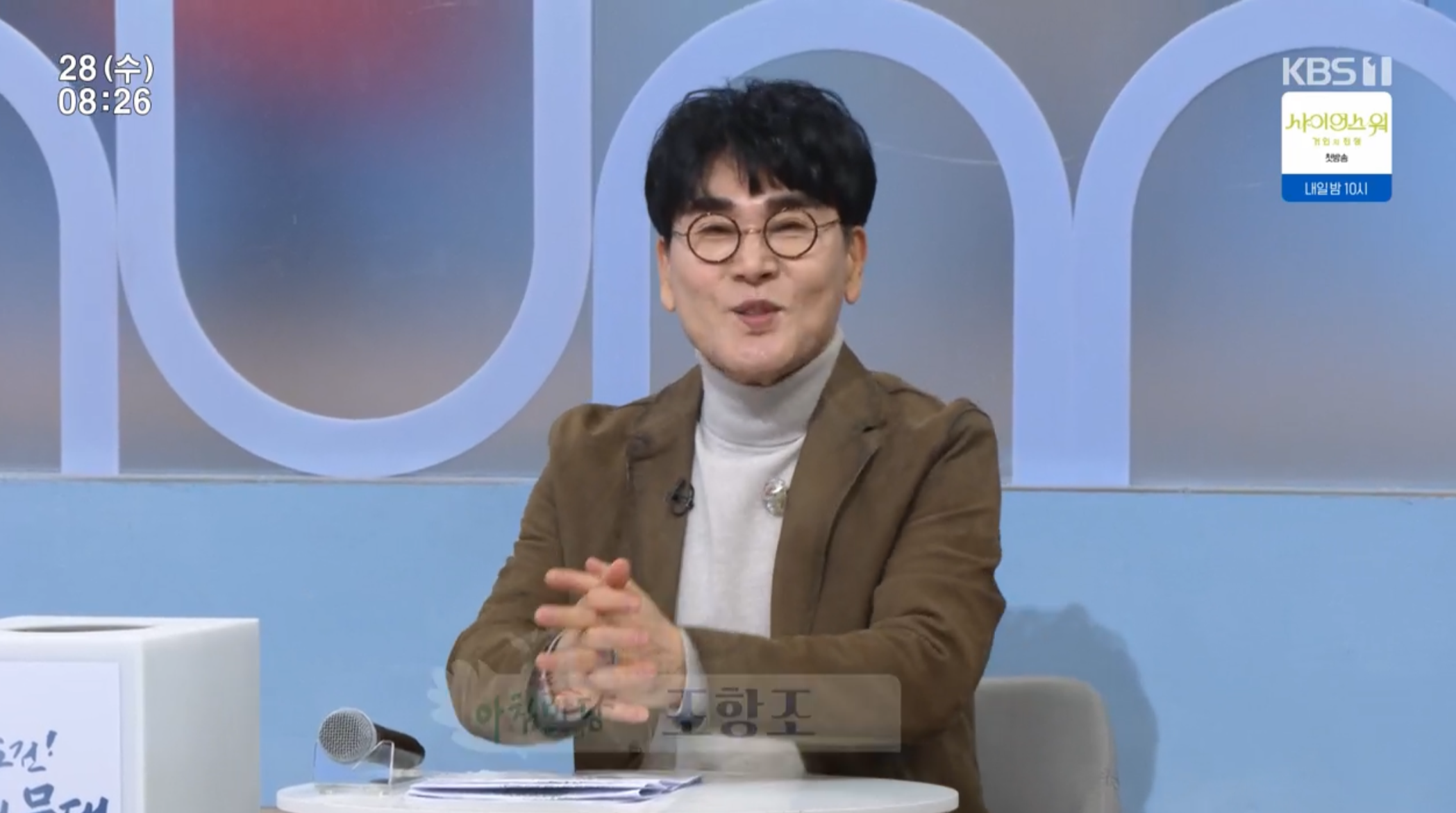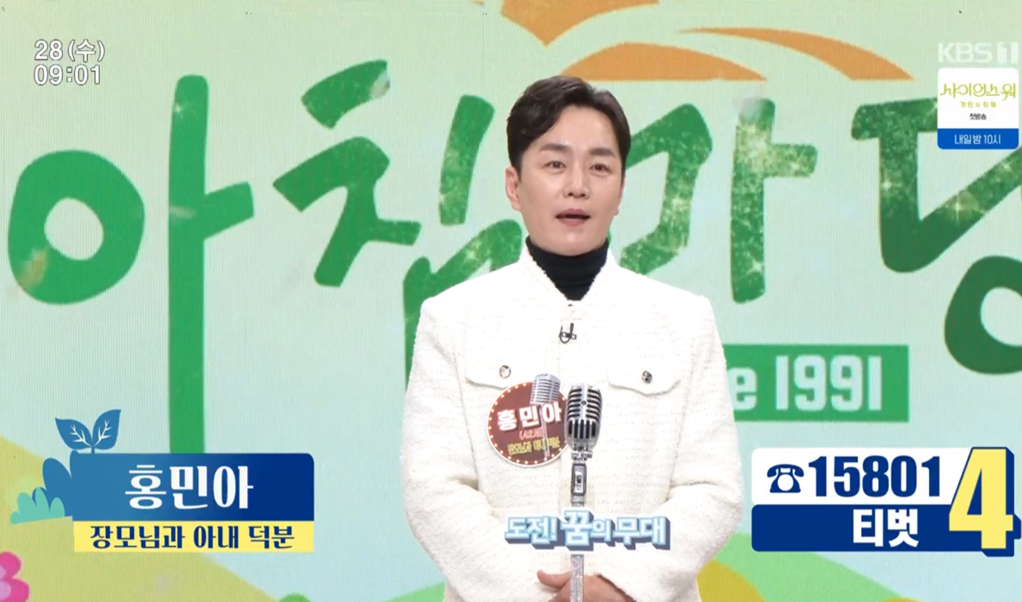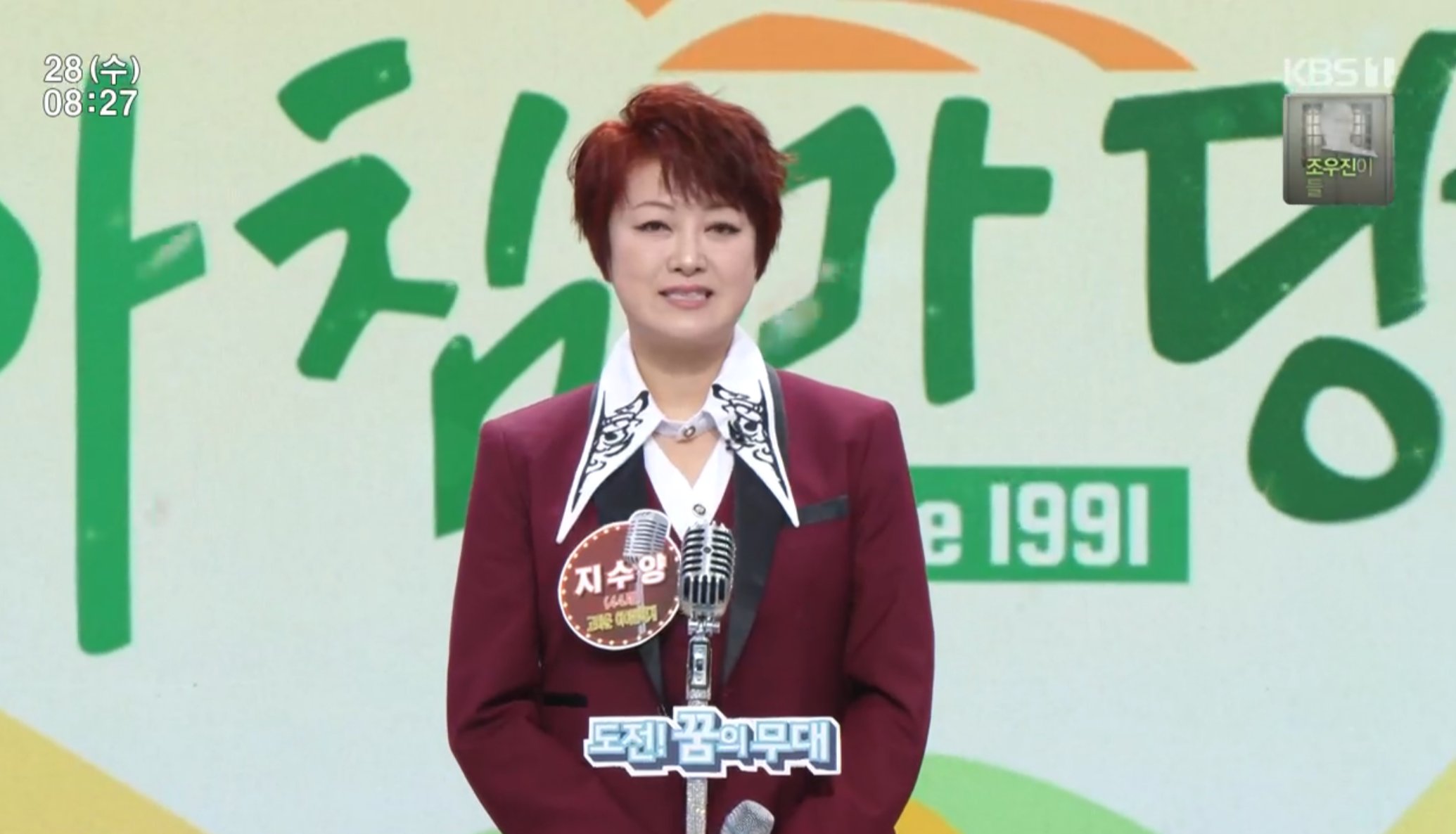 KBS1 아침마당 1월 28일 수요일 도전 꿈의 무대에는 한승헌, 장희아, 지수양, 홍민아, 홍성호가 출연했습니다. 초대가수이자 패널로는 조항조가 출연했습니다.