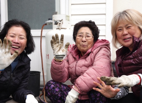 김영자 할머니의 네 딸 중 셋은 어머니의 길을 따라서 해녀가 되었습니다. 비양도의 김영실, 김영미 씨와 달리 셋째 딸인 김영란 씨는 흑산도에서 물질을 합니다. 젊은 시절에 흑산도로 어머니와 함께 원정 물질을 갔다가 남자를 만나 결혼해 지금까지 흑산도 해녀로 살고 있습니다. 겨울 물질을 쉬는 흑산도 바다를 뒤로하고 박영란 씨가 모처럼 친정인 비양도로 찾아왔습니다. 오랜만에 모인 네 모녀는 영란 씨가 가져온 전복으로 죽을 끓여먹습니다.