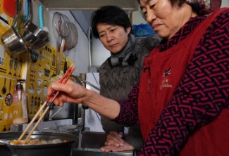 당진시 송악읍의 안섬포구는 매년 열리는 풍어제 전통에서 알 수 있듯이 수족 자원이 넘쳐나는 곳입니다. 그러나 1980년대에 간척사업으로 섬이 육지가 되고, 인근에 제철단지가 들어서면서 어민들의 터전이 점차 줄어들었습니다. 그 변화의 소용돌이 속에서 태어난 곳이 안섬포구의 포장마차 거리입니다. 14동의 포장마차에선 어부에서 졸지에 밥집 주인장이 된 이들이 갓 잡아온 해산물로 음식을 해서 팝니다. 그중 박선영(77세) 윤난식(74세) 부부는 포장마차 거리를 처음부터 지금까지 지켜 온 이곳의 터줏대감입니다. 박선영 씨가 조업해오면 아내 윤난식 씨는 싱싱한 해산물로 칼국수를 끓입니다.