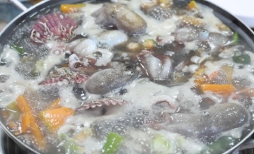 칼국수를 끓여도 허투루 끓이는 법이 없습니다. 황태 껍질과 꽃게로 감칠맛을 더한 육수에 갓 잡은 낙지를 넣은 ‘낙지칼국수’입니다. 찬 바람에 꾸덕하게 말린 붕장어는 파김치와 함께 조려 구수한 맛의 ‘붕장어파김치조림’이 됩니다. 이 맛에 반해 인근 제철단지의 일꾼들은 윤난식 씨의 손맛이 오래오래 남길 바라며 단골이 되었습니다. 변화된 풍경에서 새로운 행복은 찾은 어촌 부부의 밥상을 소개했습니다.