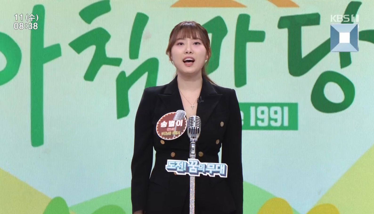 아침마당 2월 11일 수요일 도전 꿈의 무대 우승자는 송별이가 1승을 차지했습니다.