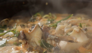 남당항의 8남매, 첫째 강순아(74) 씨, 둘째 강호권(73) 씨, 셋째 강순례(71) 씨를 비롯한 형제자매 모두가 조업과 식당 운영에 힘을 보탰습니다. 누군가는 배를 타고 조개를 들여오고, 누군가는 손질을 맡고, 누군가는 불 앞에서 손님을 맞았습니다. 가족의 손을 거쳐 차려지는 한 상에는 끓는 육수에 살짝 담가 먹는 새조개 샤부샤부가 오릅니다. 뜨거운 육수에 스치듯 익은 조갯살은 달큼하면서도 탄력이 있어, 차디찬 바다에서 거둔 제철 새조개의 맛을 온전히 느낄 수 있다고 합니다.