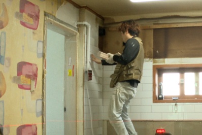 인테리어 공사 현장에서 단숨에 계단을 오르는 지훈 씨와 옆에서 티격태격 하면서도 손발이 척척 맞는 아름씨입니다. 아름 씨가 욕실의 낡은 실리콘을 떼어내고 바닥을 정리해두면 지훈 씨가 그 위로 새 타일을 가지런하게 붙입니다. 눈빛만 봐도 서로의 필요를 알아내는 일심동체 커플입니다. 일터에서 돌아오면 삼형제를 돌보아야 합니다.
