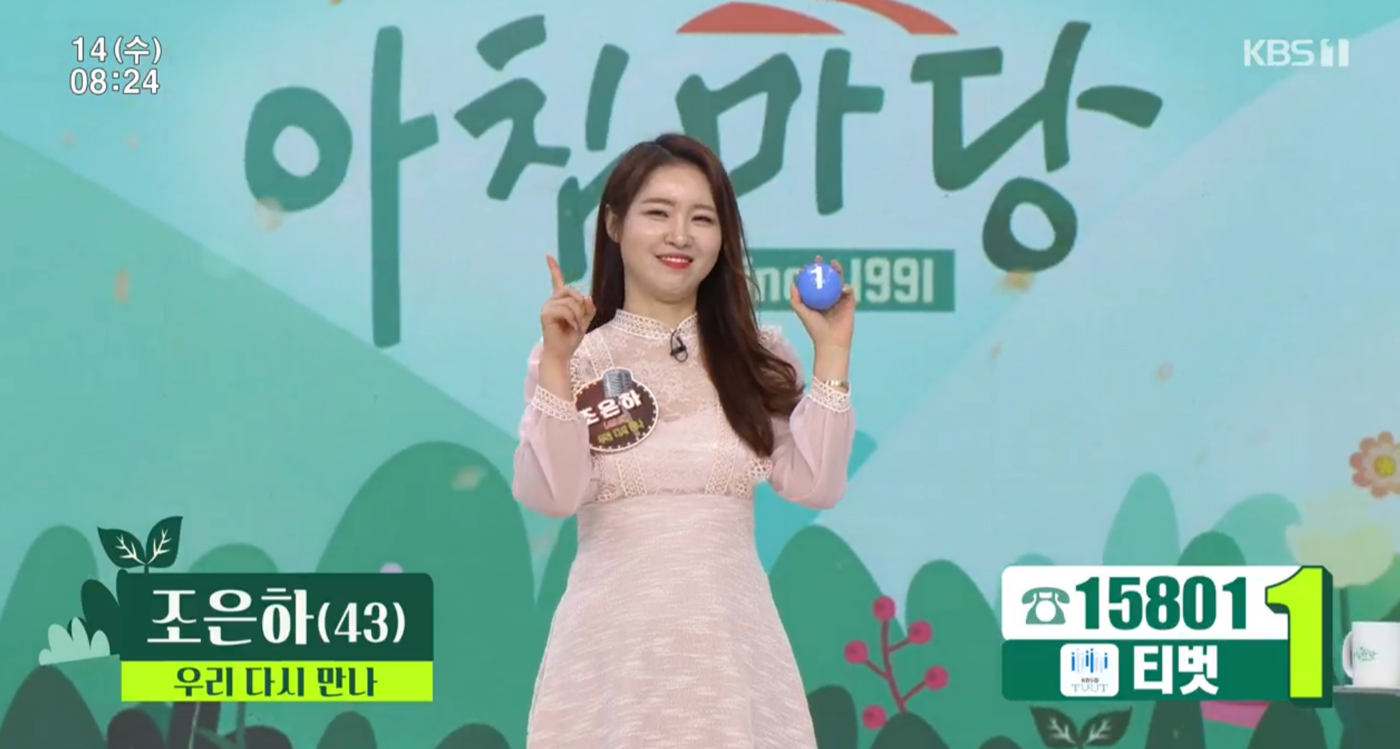 KBS1 아침마당 6월 14일 수요일 도전 꿈의 무대에는 패자부활전으로 조은하, 홍성원, 원충연 신선아 부부, 유시선, 김성훈이 출연했습니다. 초대가수이자 패널로는 설운도가 출연했습니다.