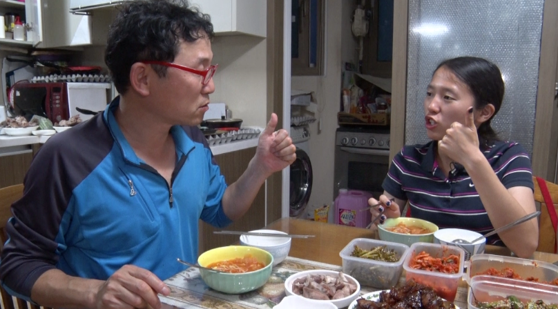 고정적으로 돈을 벌기보다는 딸과 함께 있는 시간을 선택한 아빠는 살림의 달인이 되었습니다. 방충망을 직접 수리하고 양말을 덧대어 신는 가하면 요리실력도 수준급입니다. 돼지머리를 사서 몇날 며칠을 먹을 순대국을 만들어내기도 합니다.