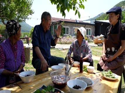 마지막으로 비오는 날마다 생각난다는 오디뽕잎전까지 더해지면 유유마을 주민들의 6월 한달만 맛볼 수 있는 오디 한상이 완성됩니다.