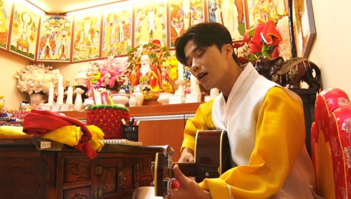 오혜빈 씨에게는 또 다른 이름이 있습니다. '연꽃도령'입니다. 오혜빈씨는 아침에 신령님께 올리는 맑은 물 옥수를 갈면서하루를 시작합니다. 곱게 한복을 챙겨 입고 열두 신상 앞에 깍듯하게 절을 올리는가 싶더니 '할아버지 굿모닝'이라며 문안 인사를 올립니다.