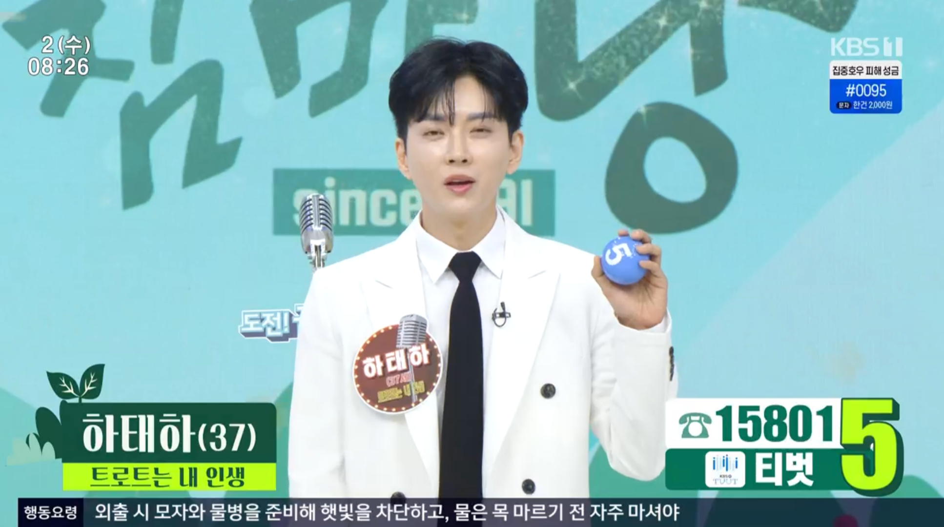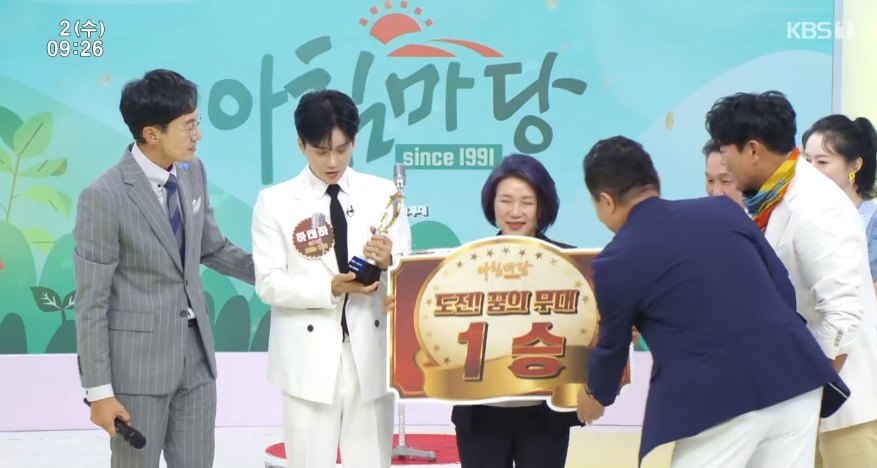 아침마당 수요일 도전 꿈의 무대 우승자는 하태하가 1승 가수가 되었습니다.