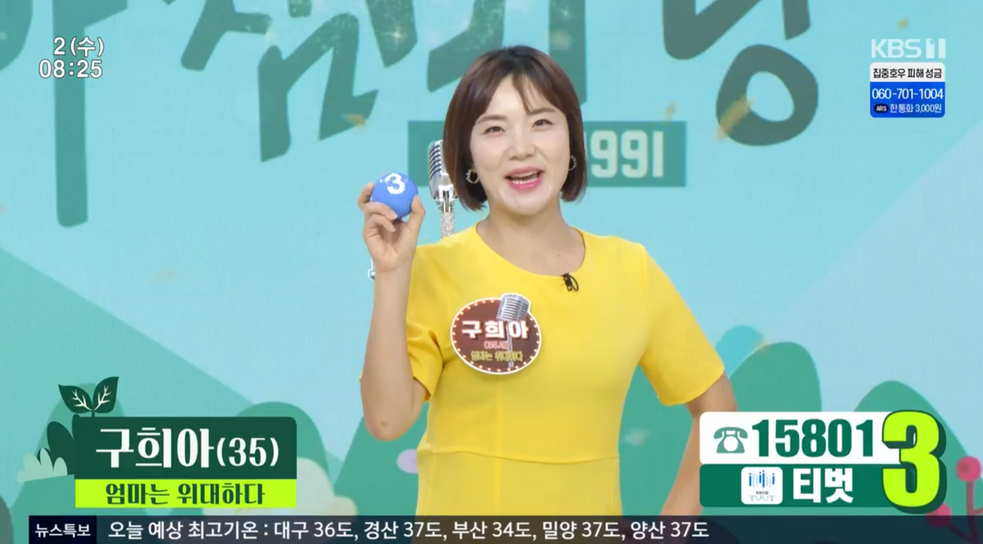 KBS1 아침마당 8월 2일 수요일 도전 꿈의 무대에는 하태하, 송우주, 송준, 구희아, 박세원, 송준이 출연했습니다.