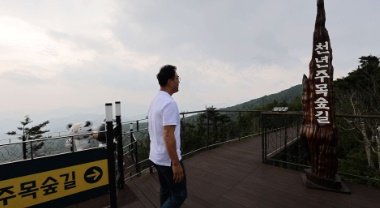 왕을 탄생시키는 기운을 가진 산이라는 뜻의 발왕산은 국내에서 12번째로 높은 산입니다. 발왕산에는 우리나라에서 제일 높은 전망대인 발왕산 기 스카이워크가 있습니다. 편도 약 18분을 오르는 케이블카를 타고 내리면 발왕산 천년주목숲길 표지판이 나옵니다. 수령 1천년은 족히 넘는 신비로운 주목 군락지가 있는 숲으로 유모차와 휠체어로도 갈 수 있는 길입니다.