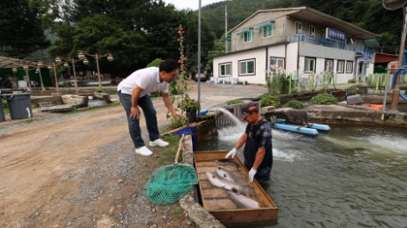 미탄면 인근을 걷던 이만기는 송어길이라고 적혀 있는 표지판을 발견했습니다. 김정란씨의 시아버지가 미국에서 평창으로 송어를 들여와 강원도에서 처음으로 시작된 송어 양식장입니다. 오늘날 '송어의 본고장'이 있기 까지 김정란씨의 남편이 송어 양식장을 이어받았습니다. 끝없는 노력으로 발안란을 만드는 독보적 기술을 가질 수 있었습니다.