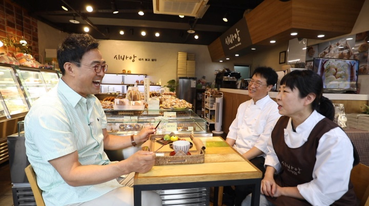 서울의 명동과 같은 천안의 원조 신도심인 신부동에 17년 째 한자리를 지키며 고소한 빵과 과자를 굽는 제과점이 있습니다. 일본에서 제과학교를 졸업한 아내 최경미씨와 서울 유명 빵집에서 바닥부터 제빵을 배운 유상모씨가 함께 꾸려가는 이 과자점에서 가장 눈길을 끄는 건 알록달록한 색감과 앙증맞은 모양의 천안 화과자 세트입니다.
