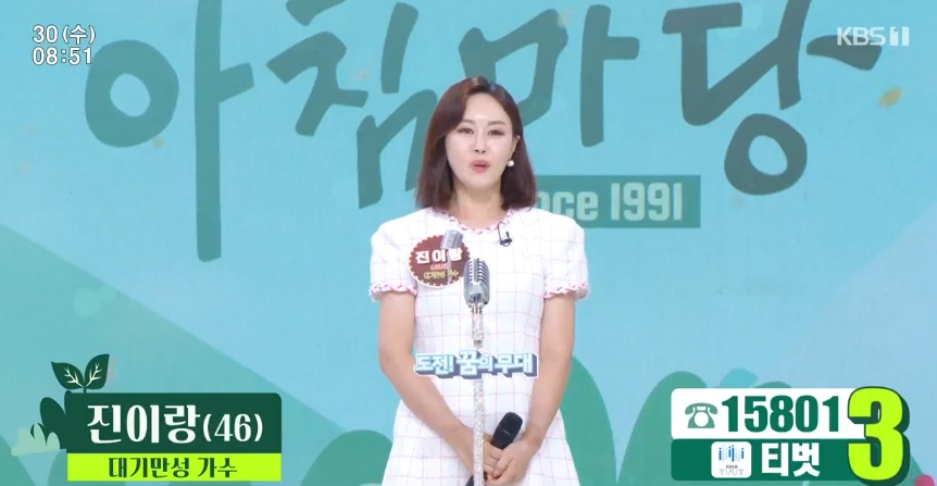 KBS1 아침마당 8월 30일 수요일 도전 꿈의 무대에는 이사벨라, 황준, 진이랑, 나현민, 신명성이 출연했습니다. 초대가수이자 패널로는 진시몬이 출연했습니다.