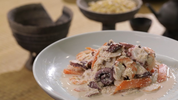 발효음식을 전공한 차은정씨는 경북지역의 토속 장인 시금장에 주목했습니다. 보리 등겨를 빻은 가루에 감주, 조청, 삶은 콩을 넣어 숙성 시킨 시금장은 시큼한 맛이 특징입니다. 신라 송자로 불렸다는 잣을 이용해 문어대하잣즙과 경북 지역의 대표 향신료인 초피가루로 열무침채 등을 만들었습니다.