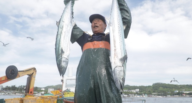 미리 쳐둔 그물에 정어리부터 때 이르게 찾아온 삼치, 방어까지 걸려 들어서 만선의 기쁨을 누리며 아내에게 소식을 전하자 아내 김순기씨는 웃음꽃이 피었습니다. 김 선장의 두 누이들이 거들어 밥상을 차렸습니다.
