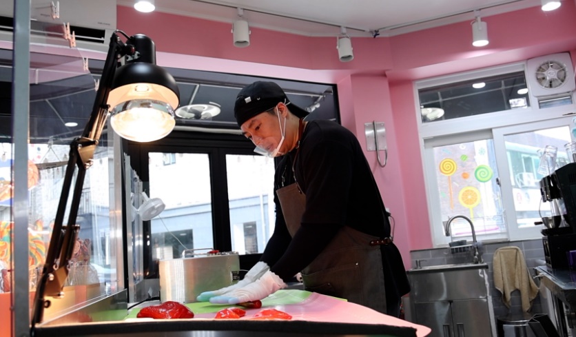 북한산 너른 품에 안긴 동네 골목을 걷다가 한 사탕 가게를 발견합니다. 롤리팝, 딸기, 오렌지, 파인애플 등 과일 모양의 디자인이 들어간 알록달록한 사탕들이 진열된 가게입니다. 독일에서 배운 기술로 약 2년 째 수제사탕을 운영중인 청년 사장입니다.