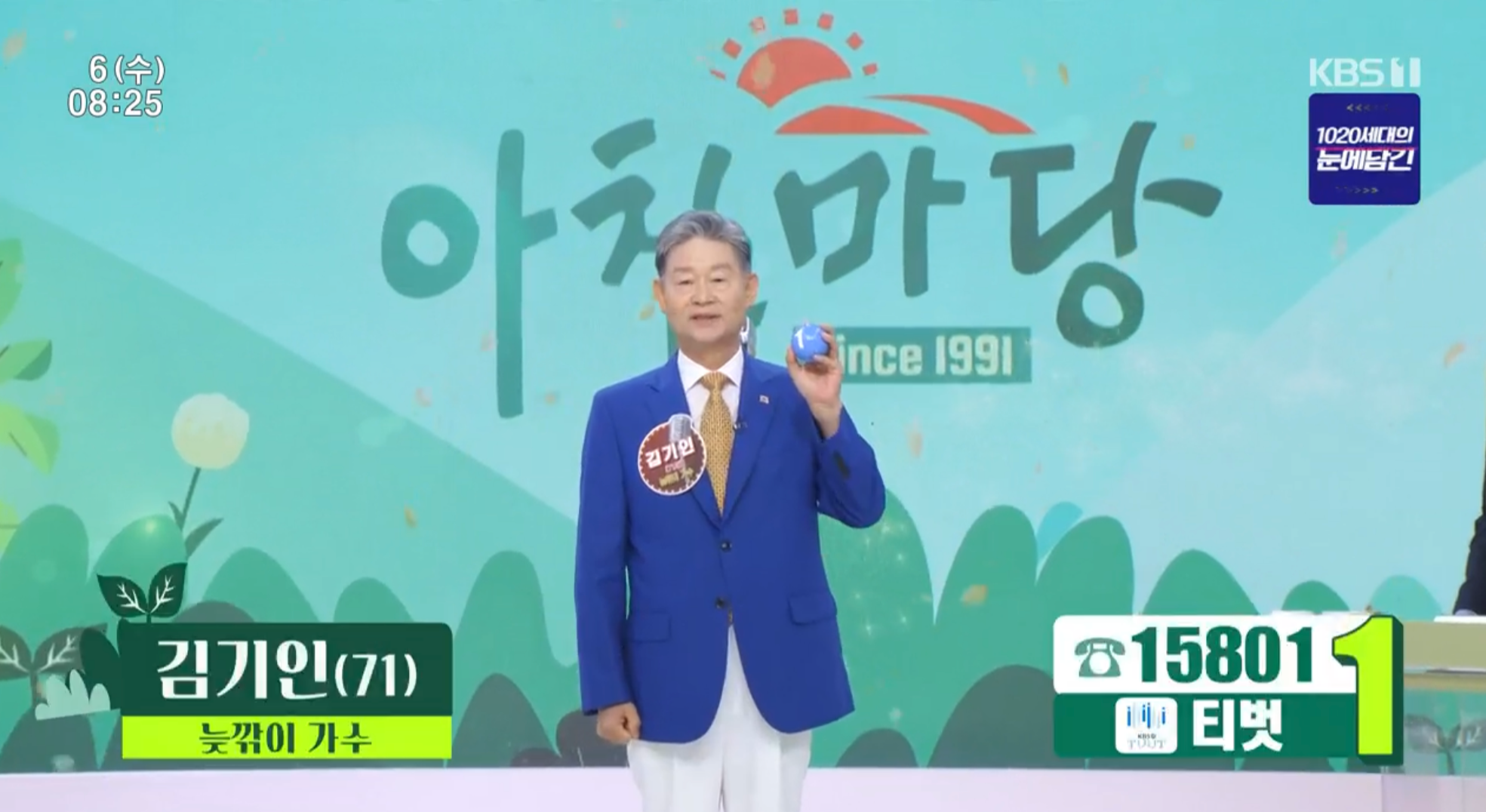 KBS1 아침마당 9월 6일 수요일 도전 꿈의 무대에는 나현민 김기인 홍향희 김무진 오하라 출연했습니다. 초대가수이자 패널로는 유지나가 출연했습니다. 나현민은 이번에 2승에 도전합니다.