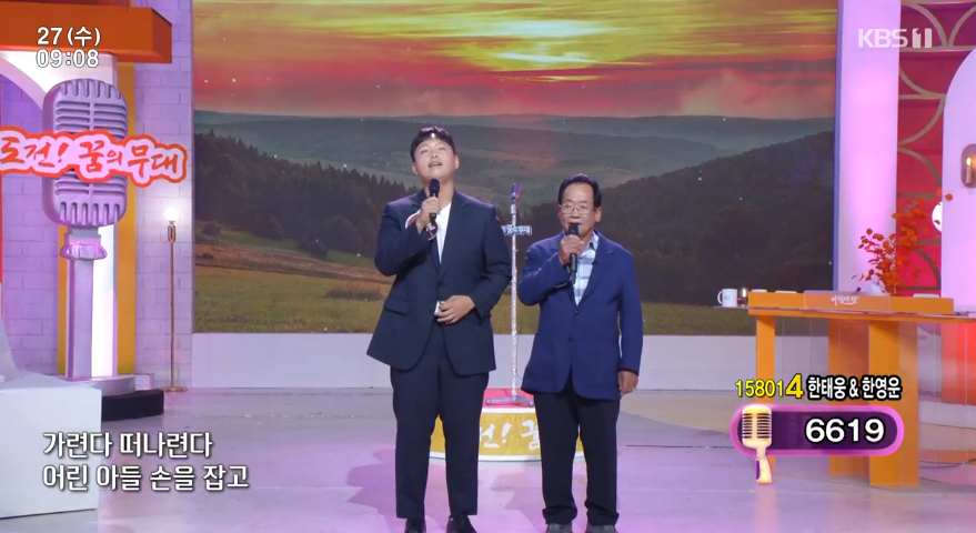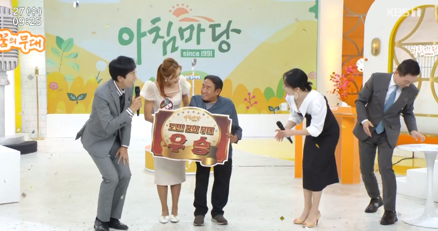 KBS1 아침마당 수요일 도전 꿈의 무대에는 추석특집 나도 가수다로 장군과 어머니 김희주, 최미향과 남편 한진석, 전영랑과 아버지 전수현, 한태웅과 할아버지 한영운, 이라경과 할머니 김영숙이 출연했습니다. 초대가수이자 패널로는 김상희가 출연했습니다.