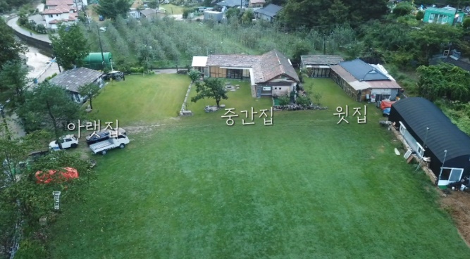 세 자매가 피땀눈물 끝에 완성된 푸른 잔디밭 위 그림같은 집의 윗집은 자매의 주 생활공간이고, 중간집은 막내 연순씨 내외의 주말집입니다. 맨 아랫집은 가족들을 위한 게스트룸으로 만들었습니다.