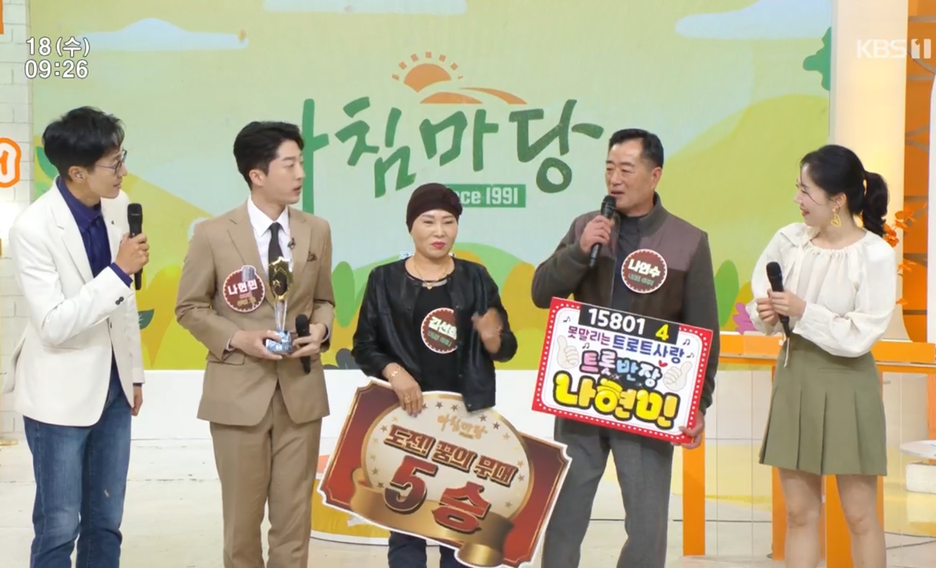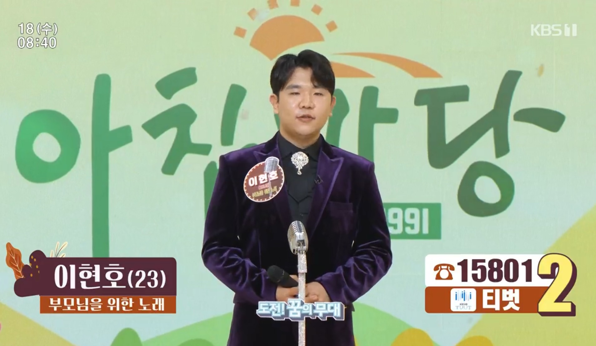 아침마당 10월 18일 수요일 도전 꿈의 무대 우승자는 나현민이 5승가수가 되었습니다.
