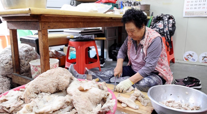 덕분에 자식이며 손주며 고기 못먹는 한은 없었고, 넉넉한 살림은 아니어도 남의 집 손 버릴 일은 없이 살았습니다. 그렇게 살만해진 요즘도 여전히 이곳 이 자리에서 수구레를 써는 어르신과 맏딸, 첫째 외손녀까지 이들에게 수구레 국밥은 시대 불문 변치 않는 영혼의 한끼 입니다.