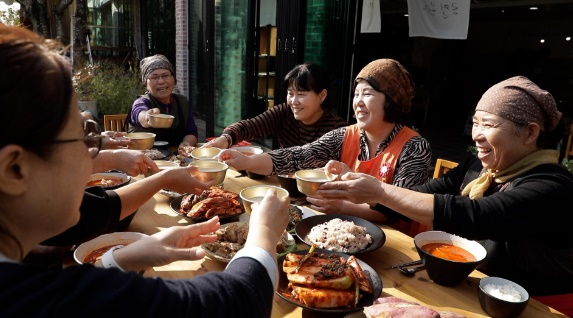 본량동 아낙들이 김장 재료를 들고 속속들이 모이는 곳은 다름 아닌 폐교 입니다. 마음 맞고 뜻 맞는 사람들이 모여 빈 학교 건물에 농가 식당을 열었습니다. 재료는 모두 마을에서 나는 농산물로 쓰고 있습니다. 김치도 마찬가지로 젓갈이며 채소까지 저마다 있는 살림 모조리 꺼내 작업 준비를 마칩니다.
