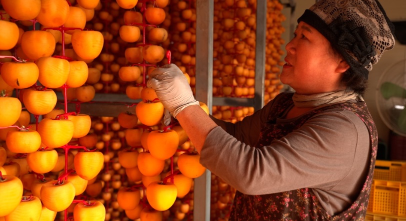 속리산 자락의 경상북도 상주에는 늦가을 정취를 가득 담은 주황색 감이 주렁주렁 매달려있습니다. 수확 철을 맞아 농장이 떠들썩하니 마을 사람들이 다 같이 모여 감의 낙하를 재촉하고 있습니다.